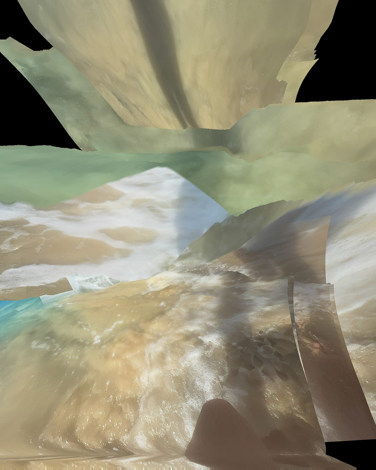 The surf, though, is not patient. It is one of the most volatile environments for my process, and I went straight for it, despite an earlier promise that I would just be. It was too seductive. Waves quickly rushed in and out. Rhythmically, repeating, then breaking their own repetition. My smartphone engine wanted continuity, a cohesive progression, a scene that could be assembled into one long sentence. The water refuses. Too much motion, too quickly. It gives you beauty, then takes it back before you can hold it. If my technique thrives on movement, the surf is movement that does not negotiate.